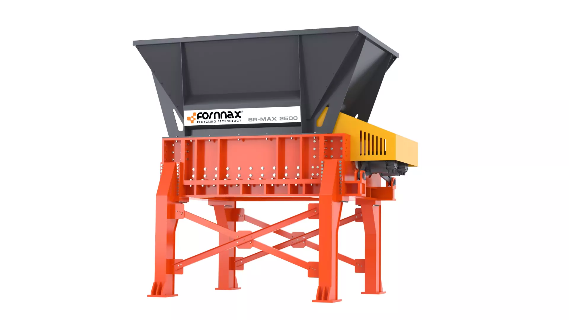 The Fornnax SR-MAX2500 Primary Shredder is a high-capacity machine with modern engineering and technology. Each shaft is driven by its hydraulic motor, which generates high torque at low speed and provides plenty of power to the individual shaft. The Fornnax SR-MAX2500 Shredder is a tailor-made and multi-purpose machine for the volume reduction of the most rigid materials. It combines ripping and shearing technologies to shred, tear, drill, cut, split, crush, break, and reduce the size of materials. Key features include a unique cutter design, a replaceable cutting table and a replaceable shaft design.